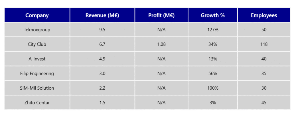 • Филип Инженеринг – градежништво, раст од 56%, приход од 3 милиони евра.